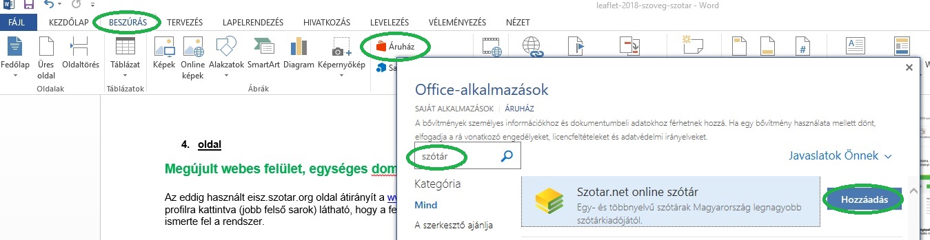 A szótárakat az Office 2013 vagy újabb verziójú programokon belül is lehet használni (Word, Excel, PowerPoint), külön böngészőablak megnyitása nélkül. Nézd meg a videóban, hogyan!
